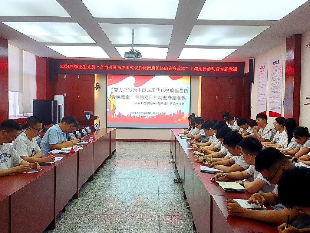 为深入学习贯彻党的二十大精神和习近平新时代中国特色社会主义思想,扎实推进党纪学习教育,进一步强化Beat365官网毕业生党员的党性修养,引导学生党员牢记身份、发挥先锋模范作用。6月21日下午,Beat365官方网站在雁塔校区机械楼210会议室召开“奋力书写为中国式现代化挺膺担当的青春篇章”2024届毕业生党员主题党日活动暨党纪学习教育专题党课。学院党委书记郭小平、副院长赵栓峰以及2024届硕、博士毕业生党员参加。支部书记张富强主持活动。