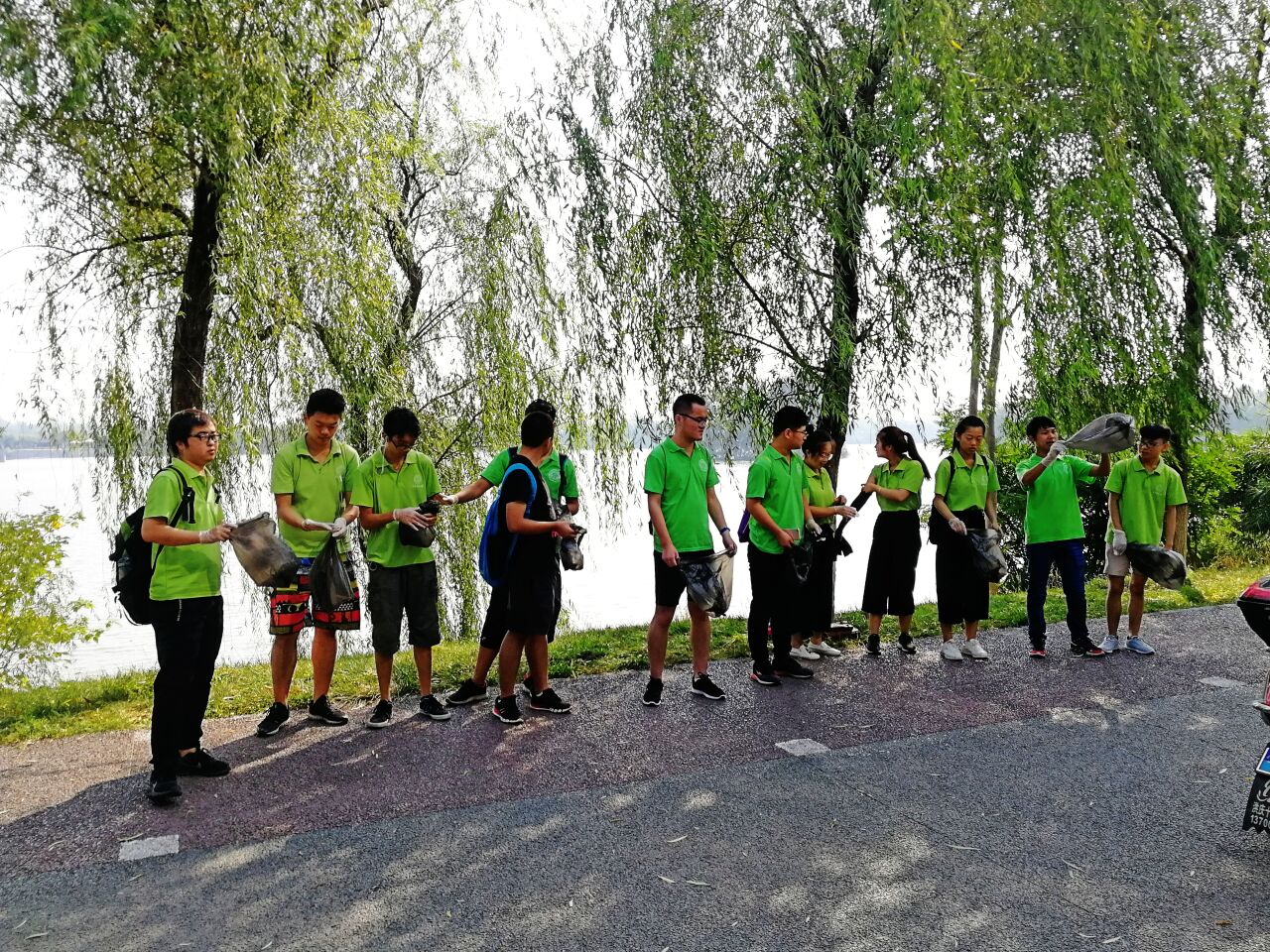 今天的实践活动在队员们将手中的垃圾袋塞满了垃圾后圆满的结束了。队员们不但清理了公园内的垃圾,并且以身作则使更多的人在平常生活中做到垃圾入箱。通过志愿者们微小的环保行为,使得公园内的生态环境得以持续发展,向人们展示一个更好的湿地公园。