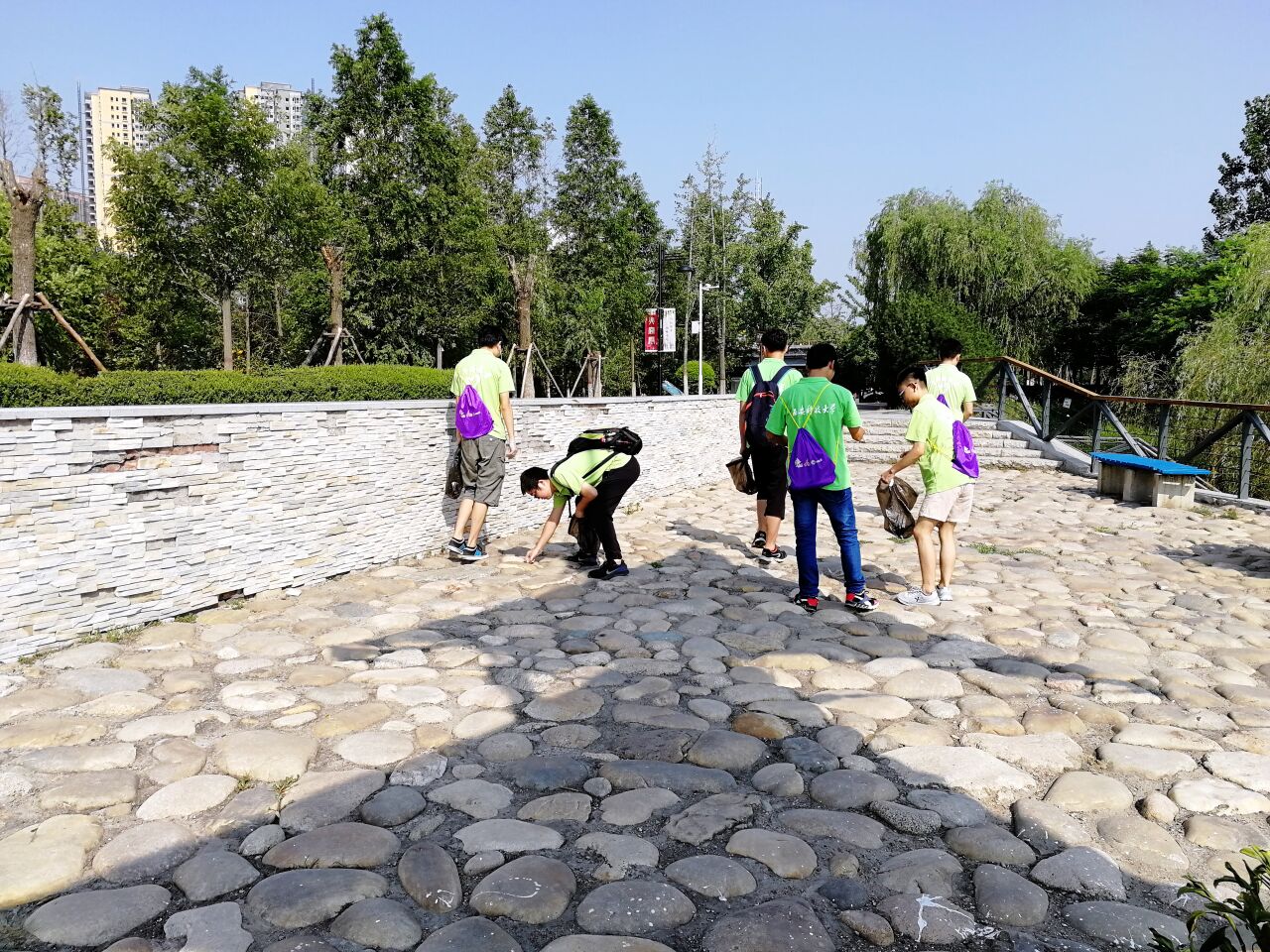 7月25日,Beat365官方网站赴西安市"践行环保,美丽中国"实践团进行了第六天的环保实践活动。“实践是检验真理的唯一标准”,今天环保志愿团队来到了西安市灞桥生态湿地公园,进行义务清扫活动。