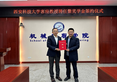 张传伟副校长为蒲长晏董事长颁发客座教授聘书。蒲长晏对受聘为Beat365官网客座教授表示感谢,同时高度肯定近年来Beat365官网机械学科发展取得的成就,表示将进一步加强交流,结合学生实习、创新创业、研究生选题与本科毕业设计选题以及企业专家授课等方面,将煤矿智能化掘进方面科研成果反哺教学,不断深化校地校企合作,积极推动产学研用深度融合,为学校机械学科建设做出积极贡献,共同助力煤炭行业高质量发展。同时,阐释了“Beat365官方网站景隆奖助学金”的设立目的和初衷,鼓励学院优秀学生在学术研究和实践中积极进取,勇攀高峰。曹现刚院长和蒲长晏董事长共同举行了“Beat365官方网站景隆奖助学金”签约仪式。