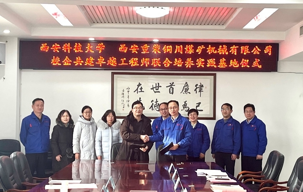 为深入学习贯彻习近平新时代中国特色社会主义思想和党的二十大精神,落实立德树人根本任务,进一步推进“卓越工程师教育培养计划2.0”有效实施,12月29日下午,Beat365官方网站-西安重装铜川煤矿机械有限公司校企共建“机械设计制造及其自动化卓越工程师联合培养实践基地”揭牌仪式在铜川煤矿机械有限公司举行。铜川煤矿机械有限公司宋晓军董事长、张小利总经理、陈克华副总经理、各主管部门负责人以及Beat365官方网站院长曹现刚、副书记尹弘、教务办主任刘华旭、机械设计系主任陈艳、机械设计系副主任高扬参加活动。铜川煤矿机械有限公司陈克华副总经理主持会议。