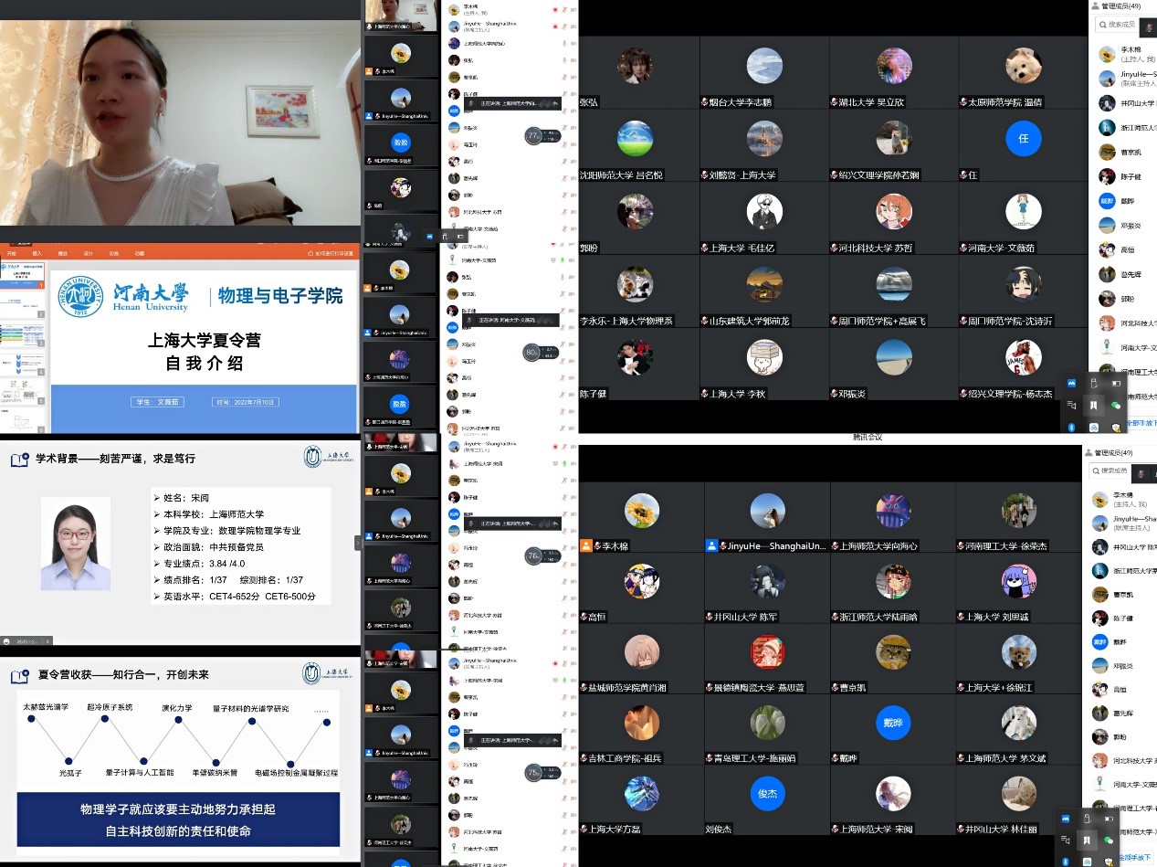 在葛先辉教授的主持下,在校优秀研究生代表与营员们进行了考研和在校经历分享。营员们也就报考事宜和毕业就业等进行了踊跃提问和信息咨询。夏令营期间,从学生出勤、活动情况、个人风采展示多个方面进行考核,由老师们投票,评选出了20位优秀营员,并线上颁发了优秀营员证书。至此,2022年新葡的京集团8814登录入口物理系夏令营圆满落幕。