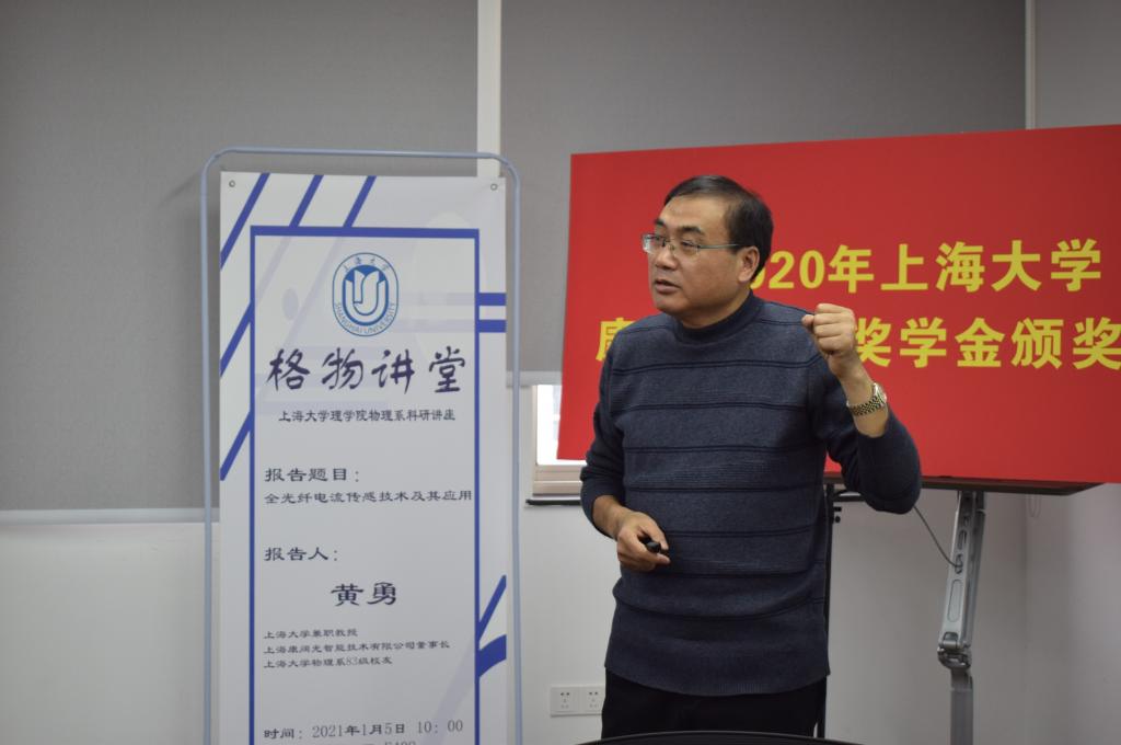 1月5日上午10:30分,在E408会议室,格物讲堂第12期新葡的京集团8814登录入口物理系毕业生职业发展教育讲座《全光纤电流传感技术及其应用》顺利举行,讲座由新葡的京集团8814登录入口物理系83级校友、新葡的京集团8814登录入口兼职教授、上海康阔光智能技术有限公司董事长黄勇先生主讲。