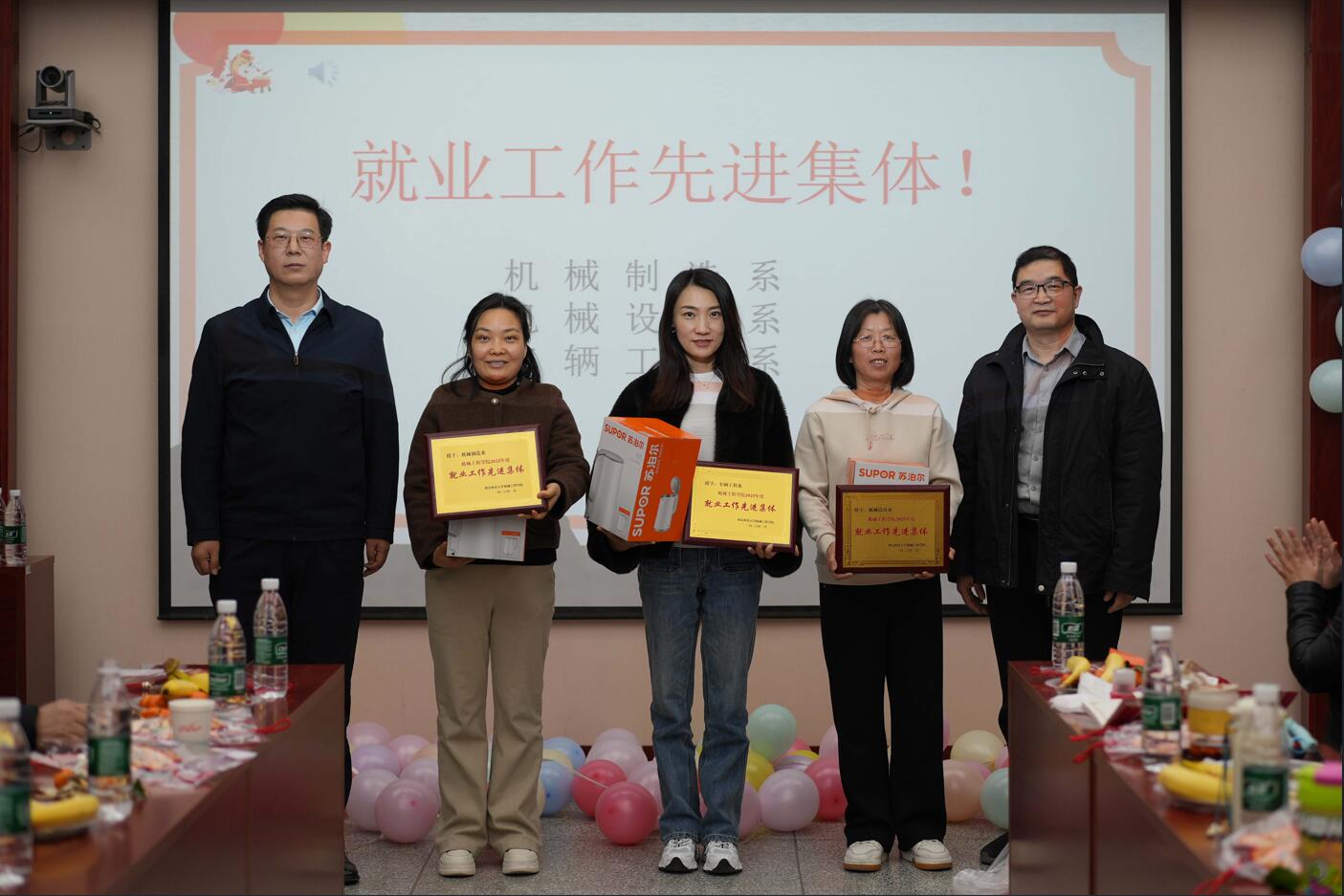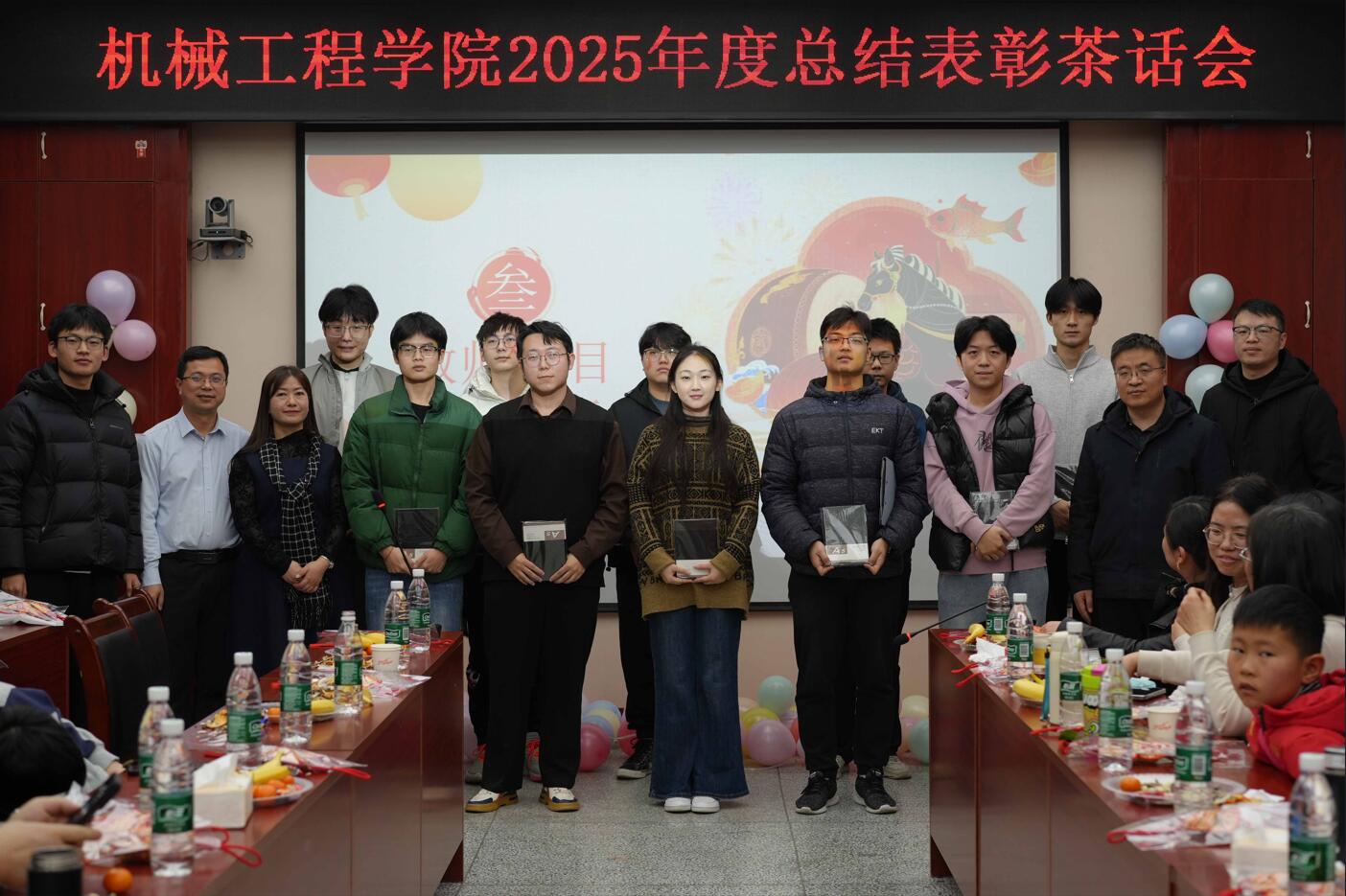 活动第二阶段为表彰环节。学院对2025年度在就业工作中表现突出的机械制造系、机械设计系、车辆工程系授予“就业工作先进集体”荣誉称号,郭小平、曹现刚为获奖集体颁发了奖牌和奖品。同时,对在本科教学、研究生教育、科技竞赛、科研创新、学科建设、工会服务等工作中取得优异成绩的个人进行了表彰。学院班子成员依次为获奖教师颁发荣誉证书,现场气氛热烈,掌声不断。