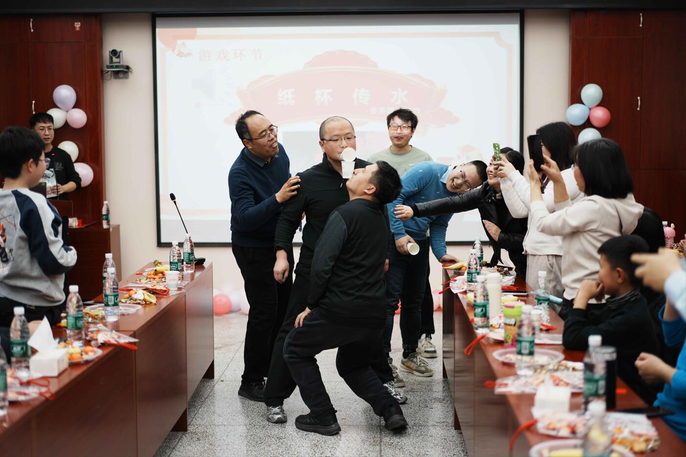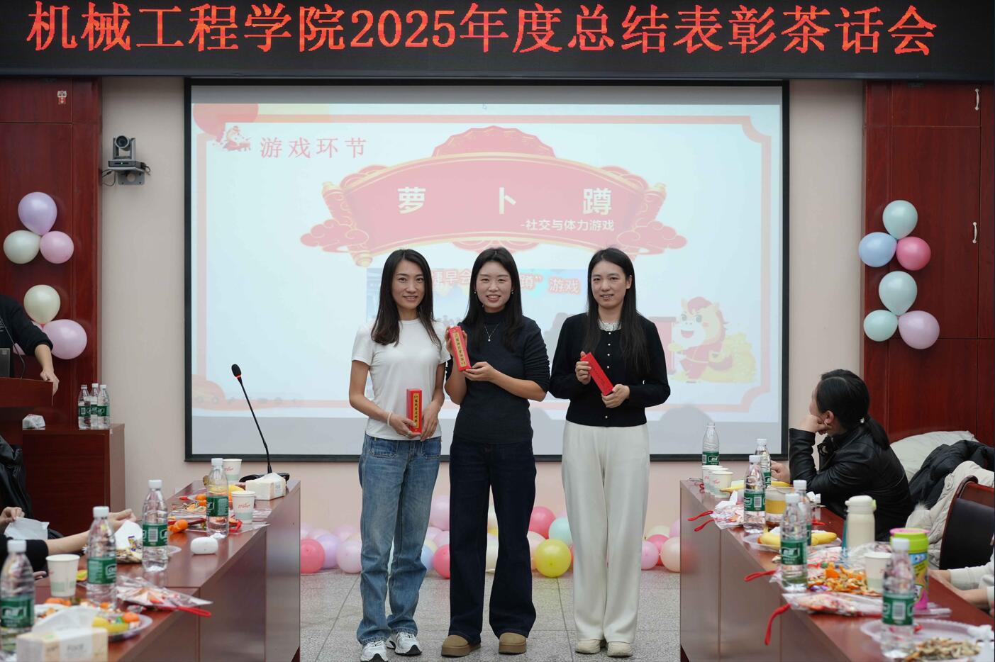 活动第三阶段为茶话会。各系节目精彩纷呈,现场笑语连连。穿插进行的即兴抢答、“击鼓传礼”“纸杯传水”“萝卜蹲”等互动游戏,更是将气氛推向高潮,大家在欢声笑语中交流情感,凝聚情谊。